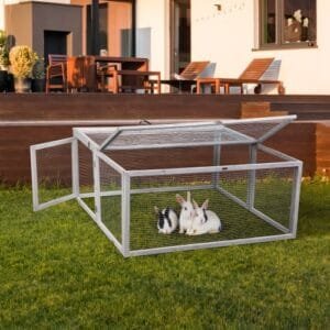 Portable Grey Folding Rabbit Hutch & Guinea Pig Runway with Perch Pole