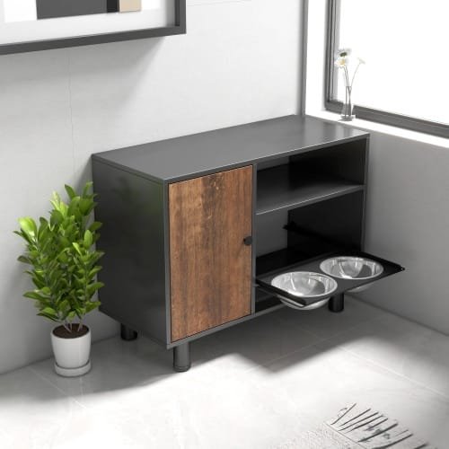 • Adjustable Bowl Heights: Two stainless ‌steel bowls can be pulled out on the right side ⁢with adjustable heights​ to accommodate dogs⁢ of different ‍sizes.​ Pull them out during meals or tuck them away when not in use—no clutter!
